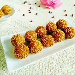 When making fillings, more peanuts are needed, and white sugar and black sesame seeds can be used equally.When frying, keep the oil temperature low, turn off the heat, and fry repeatedly until the sesame balls are crispy, allowing them to expand and prevent them from frying.Millet flour is as sticky as glutinous rice flour.