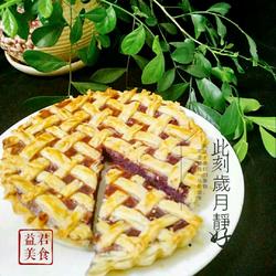 4. After pouring the purple sweet potato puree into the pie plate, cut another Luxinyuan flying cake Strip.