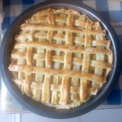 4. Start making the pie crust and take one-third of the dough.2.Roll it into a round shape and place it in a pie plate or pizza plate