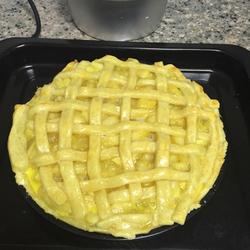 8. Beat the egg (one), add lemon juice (10 grams) and salt (a little ) Stir evenly and use a brush to spread over the apple pie.