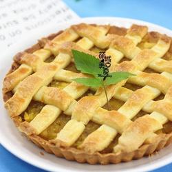 14. Roll out the excess dough and cut it into long strips, using a basket weaver Method cover the apple filling.Brush the surface with egg yolk liquid and put it in the oven.Preheat the oven to 200 degrees for 30 minutes.