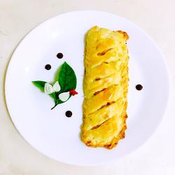 13.Wrap the yellow peach pieces, press them with a fork, and roll them up
