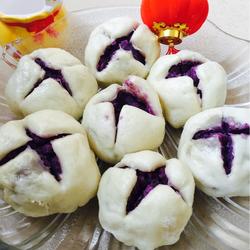 5. Steam the purple sweet potato, add a little condensed milk and mix well