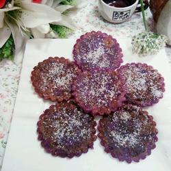 8.Put it on a plate and sprinkle with coconut, and the purple potato cake is ready.