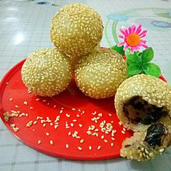 13. Fry for a while until the sesame seeds turn yellow.Take out the sesame balls and drain the oil.Pad