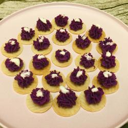 3.Mixed purple sweet potato Put the mud into a piping bag.I used a ten-tooth sunflower nozzle