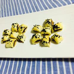 7.Then cut into small pieces and place in a baking pan.Brush with egg wash and sprinkle with sesame seeds