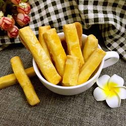 6. Cut into strips and brush with egg yolk.Bake at 150 for about 20 minutes