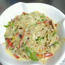 8.Pour in the thin noodles and mix well until the soup is absorbed