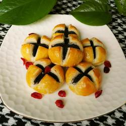 Just mix the dough and pastry according to the ingredients and knead evenly.When making crosses, be sure to wait until the egg liquid dries before making the cross, otherwise it will be easily deformed! Make the incision as large as possible, it will look more beautiful after shaping! The specific temperature depends on your own oven.