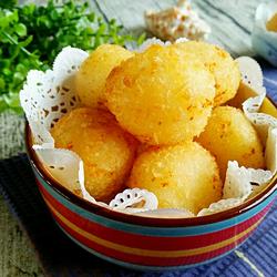 Fried potato balls should be fried slowly over low heat, but it is not easy to fry them for too long.If they change color, take them out.
