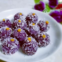 3.Knead the purple sweet potato puree into small balls