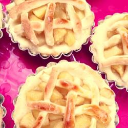5. Preheat the oven and leave one third of the Roll out the dough and cut it into long strips.Then stuff the fried apples into the tart pan and cover it with the cut dough strips and weave a basket.Brush the apple filling with a layer of egg yolk and put it in the oven for 20 minutes