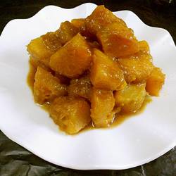 5. When the pumpkin is ripe and the water is almost dry, add soy sauce and stir-fry evenly before serving.