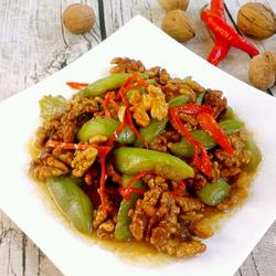 Boil the walnut kernels in water, which can remove the bitter taste of the brown skin.If you are not afraid of trouble, use hot water.Soak the walnut kernels in water for a few minutes to peel off the brown skin, and the white peach kernels will be more delicious when fried.