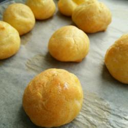 7.Use two spoons or a piping bag.Let the puffs take shape.Bake in the oven at 210 degrees for ten minutes.After the puffs have risen, turn to 180 degrees and bake for 20 to 30 minutes
