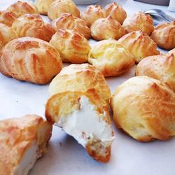 9. Place in a preheated oven at 210 degrees and bake for about ten minutes.After it swells, adjust the temperature to 180 degrees , bake for 15 to 20 minutes, until the surface is golden brown.