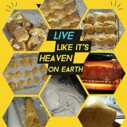 8. Squeeze the cream, transfer it from the electric oven plate to the silicone paper, and take out the puffed puffs.It became flat when I took it.After a few minutes of testing, it didn't happen.Since mine was relatively thin, I could see that the skin of the puffs was extremely thin