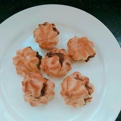 7. After the puffs have cooled, open a hole on the side and add bean paste.