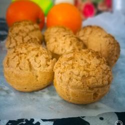 15.Put the cream into a piping bag.Squeeze the cream from the bottom of the puff.