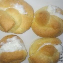 9. Cut the cooled puffs into 2/3 with a bread knife and embed them in the cream.