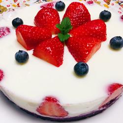 8.Add a few strawberries, blueberries, and mint leaves to the top of the cake to garnish.