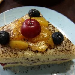 9.Apply it , add a layer of sandwiched fruits as you like, I added canned yellow peaches made by myself