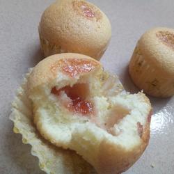 13. Squeeze in the jam and cover it with a layer of cake batter in the middle (the baby is not studying, let him help)