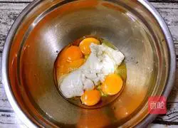 14.Put one-third of the egg white into the egg yolk and mix evenly
