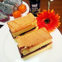3. Take out of the oven and turn it upside down.After cooling, apply blueberry sauce and cut into pieces