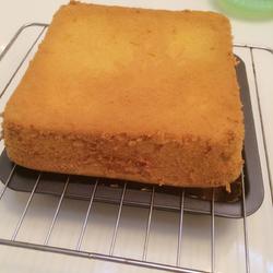 9. Pour into the square mold and place it in the oven before placing the cake.Shake it gently a few times to pop out the bubbles! Then bake in the preheated oven! , preheat the oven to 140 degrees, heat up and down, middle layer! Bake for about 50 minutes, each oven temperature is different! You must pay attention to the heat! The heat is the key to keeping the chiffon cake from cracking or collapsing!