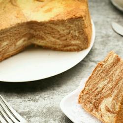 11. Take a spoonful of cake batter and put it into the cocoa batter and mix well.Pour the cocoa cake batter into the original cake batter and stir it a few times with a spatula