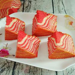 The time and temperature for baking cakes are subject to your own oven.The cake batter must be mixed Technique, otherwise the egg whites will defoam and the cake will not rise as high...When pouring the two colors of cake batter alternately, there is no need to shake it deliberately.The more times you pour it, the more layers the cake will have.Just do as you like.Now...