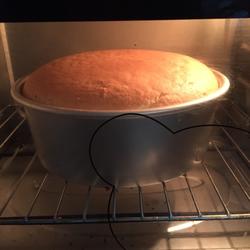 8. Pour the evenly stirred batter into a 6-inch mold, bake at 180 degrees for 30 minutes, turn it upside down to cool after taking it out of the oven