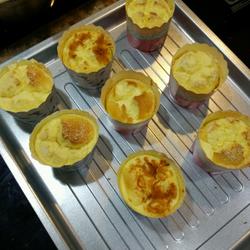 7. Put the cake into the paper cup, 8 or 9 points full, I am in it Sprinkle some coconut and meat floss on a few
