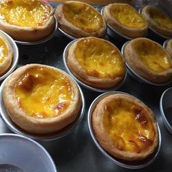 7. Now you can make the tart water.Pour the milk sugar into the milk pot and heat it until the sugar melts.Turn off the heat, then pour in the light cream condensed milk, add the egg yolk when it is not hot, mix well and put it in the refrigerator for later use.