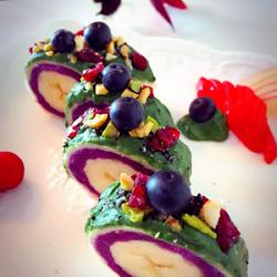 1. Remove the edges of the bread and use a rolling pin to flatten the bread and apply the steamed purple sweet potato on the inside if the purple sweet potato is too dry.You can add some honey water or blueberry jam for a better texture.Add banana and slowly roll it up