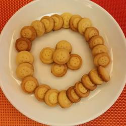 8. Carefully move the carved circles to the baking sheet and place them at a distance.Then use a toothpick to poke 4 symmetrical holes in the inner circle