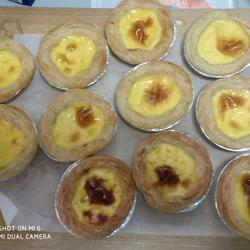 4.The last step is to pour the egg tart liquid into the egg tart shell one by one.I bought the egg tart shell (20 grams each, upper circle diameter 7 cm, lower circle diameter 3 cm)