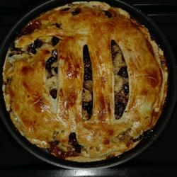 2. Divide the dough into 2 pieces, spread one piece on the bottom of the plate, and use a fork to make small holes to prevent Will puff up when roasted.