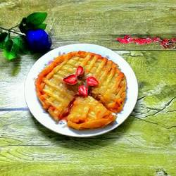 9. Let it cool slightly, take it out and put it on a plate, like this A plate of apple pie with strawberry jam is ready.