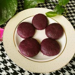 6.Take an appropriate amount and roll it into a round shape Press into purple potato cakes