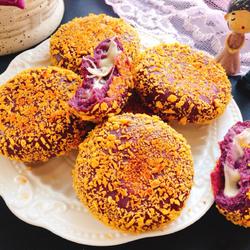My purple sweet potato is baked and relatively dry.If you want to steam it, please increase the amount of flour.Breadcrumbs are sold in supermarkets or bakery supply stores.If you don’t have them, you can use white sesame seeds.It’s also delicious.If you like sweets, Friends, you can replace the salt in the recipe with 15 grams of sugar to get a sweet purple potato cake