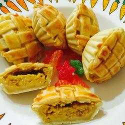 If the pumpkin puree has a lot of water, you can add more milk powder to absorb the water.When sorting the pie crust, use a rolling pin to roll it along the edge of the mold to make it much easier.