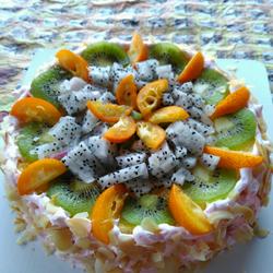 4. Cream the cream with white sugar until texture appears, add red yeast powder and stir evenly, put it into a piping bag, stick ginkgo slices on the edge, bake the ginkgo slices in advance in the oven at low temperature until they change color, take it out to cool, and put it on top Add your favorite fruit and you’re done~