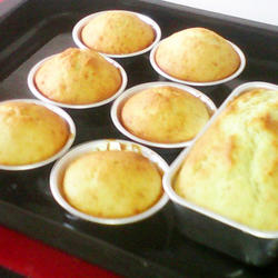 4.Pour the mixed batter into the mold, 2/3 Once full, place in a preheated 180-degree oven on the middle rack, with upper and lower heat, and bake for 15 to 20 minutes, until the surface is golden brown and you can take it out.