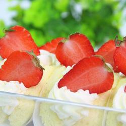 9. Then put the simple cakes together and insert the strawberries cut in half