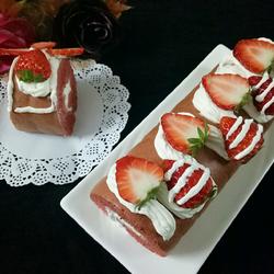 13. Spread cream on the cake that has been warmed by your hands, roll it up with oil paper, and put it in the refrigerator to refrigerate