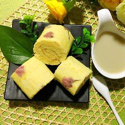 8. Take it out and let it cool a little, pour it into another piece of tin foil, and paint the side without the cherry blossoms Add the strawberry jam, then slowly roll it up, wrap it in tin foil and put it in the refrigerator for half an hour.Take it out and cut it into rolls