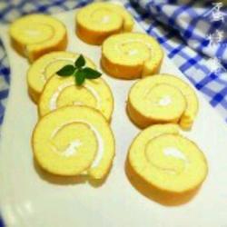 7. Take it out of the oven, invert it for two minutes, unmold it, roll it up while it is hot, and put it in the refrigerator Refrigerate for 15 minutes